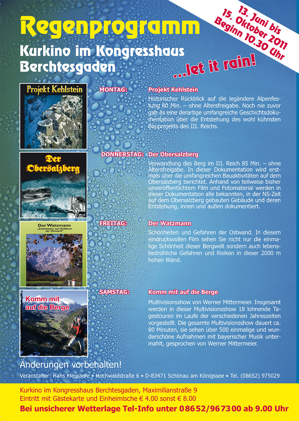 Termine Dokumentarfilme Eintritt: • Gäste mit Kurkarte, Einheimische und Kinder EUR 5,00 • ohne Kurkarte EUR 8,00
